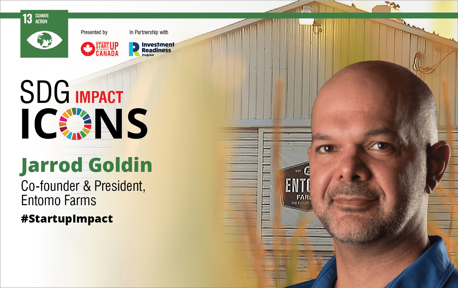 In partnership with Employment and Social Development Canada, each month, Startup Canada is celebrating and putting the spotlight on a leading Canadian social innovator driving change in one of the UN’s Sustainable Development Goals. Startup Canada was pleased to sit down with Jarrod Goldin, Co-founder & President of Entomo Farms to learn about their impact on SDG 13—Climate Action.
