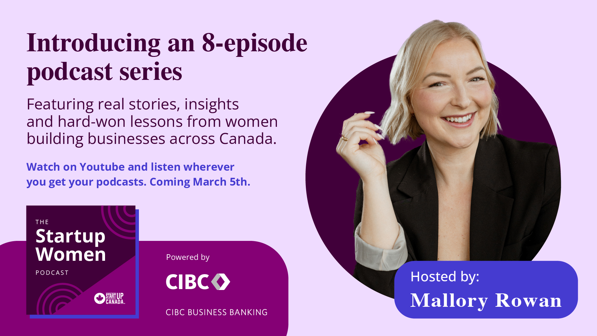 Something big is happening for women entrepreneurs in Canada. In partnership with CIBC, Startup Canada is thrilled to launch the 2026 Startup Women Podcast, an 8-episode series dedicated to amplifying the real stories, challenges, and triumphs of women founders across the country. Hosted by Mallory Rowan and recorded at Studio House Toronto, this series dives into the real stories behind the scenes with entrepreneurs when they thought they wouldn’t make it, decided to change everything, or even just hit an unglamourous road bump.